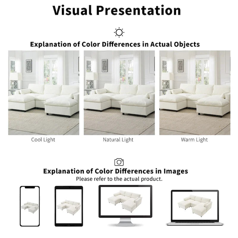 86.5 Chenille Modular Sofa with Storage Pockets, Movable Ottomans