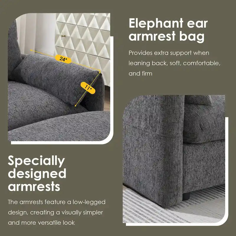 Transform your living space with our Multifunctional Sectional Sofa, designed to offer both comfort and convenience. This sofa features an oversized 32.5-inch ottoman that doubles as a footrest and provides hidden storage space, perfect for stowing away blankets, books, or other essentials. The adjustable phone holder allows you to position your phone at the ideal angle for hands-free use, while the built-in Type-C and USB charging ports ensure your devices are always powered up. The armrests are equipped with practical storage pockets, keeping essentials like remotes and magazines within easy reach. Soft, cushioned armrest pillows enhance comfort, and the extra-wide 29.5-inch seat offers ample space for relaxation. This sofa combines practicality with comfort, making it a great addition to any home.