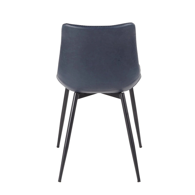 Classically refined with a touch of industrial brawn, the Dining Chair will be a stylish addition to your dining or seating area. Featuring vintage faux leather upholstery with zig-zag stitching and black metal tapered legs. Sold in a set of two.