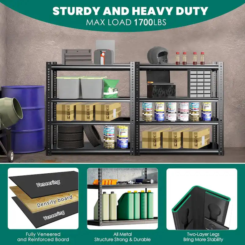DoCred storage shelves are made of heavy-duty cold rolled steel and 8mm thickened density board, with a black veneer sealing process that resists rusting even in a wet garage. A wide range of sizes are available to fit perfectly in different places. Widely used in kitchen, living room, garage, warehouse, utility room, patio storage.