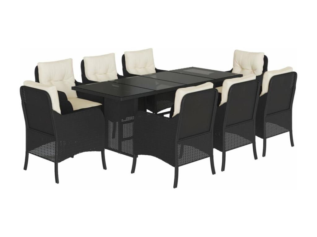 9-piece garden dining set with cushions, black resin wicker 01984FJWX