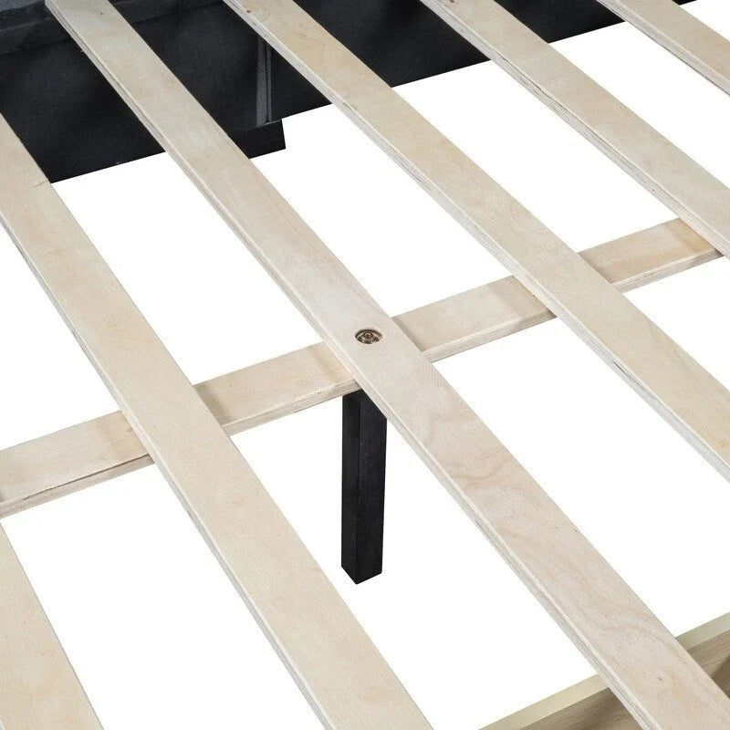 [No Box Spring is required] This queen-sized bed frame comes with many wooden slats, and as such this bed doesn't require a box spring. Mattress is not included. backrest is included as a comfy linen fabric backrest that brings you and your partner a cozy feeling.