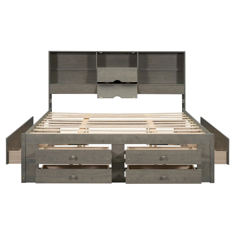 King Size Modern Wooden Bed with Storage Headboard and 8 Drawers