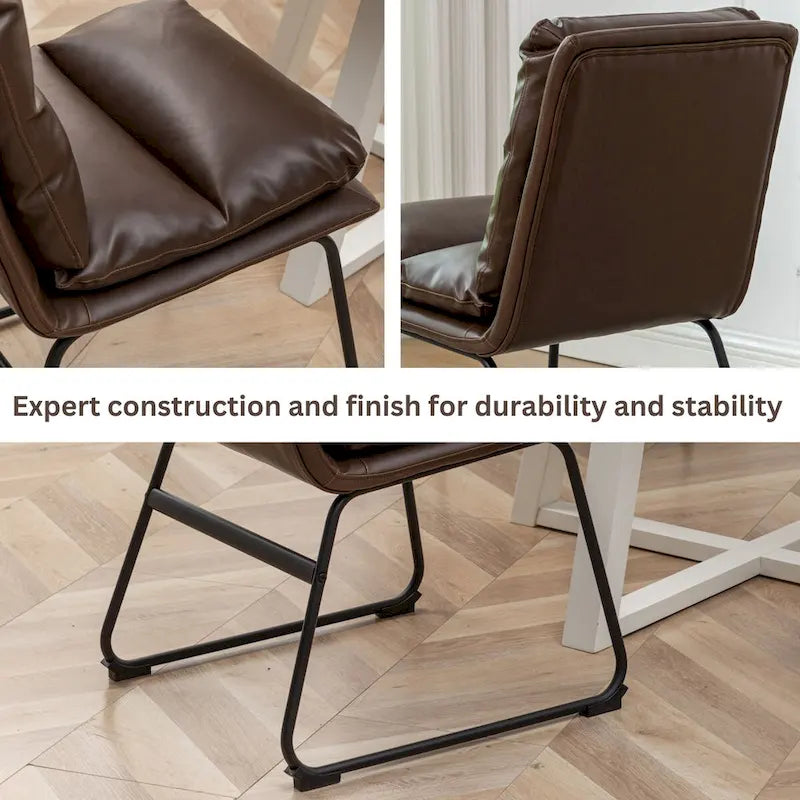 - [STYLISH 5-PIECE SET] : This complete set includes one sleek round dining Table and four matching Chairs. Choose from two chair color options: Antique Brown(faux leather) and Vanilla White(polyester blend).