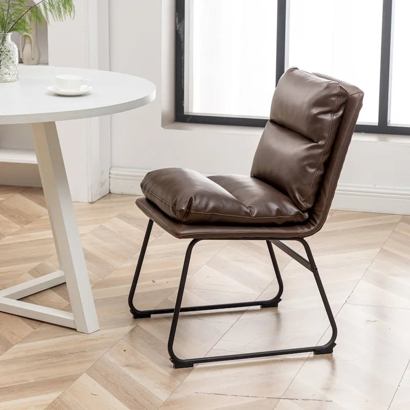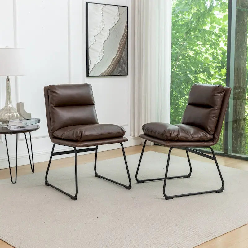 Meet the Roundhill Innes 5-Piece Round Dining Set! This set includes an elegant round dining table and four contemporary side chairs, making it an ideal addition to your dining area. The dining table features clean lines with a minimalist, light design. Its white stylized trestle base adds a touch of elegance, while the melamine tabletop ensures durability and minimalist appeal. Constructed with a rubberwood base and decorative MDF laminate top, this round table provides ample space for entertaining family and friends. The chairs, which feature a sled-like metal base and detailed stitching, are overfilled with faux leather (Antique Brown) / polyester blend (Vanilla White) for a hugging comfort that perfectly fits the curve of your body.