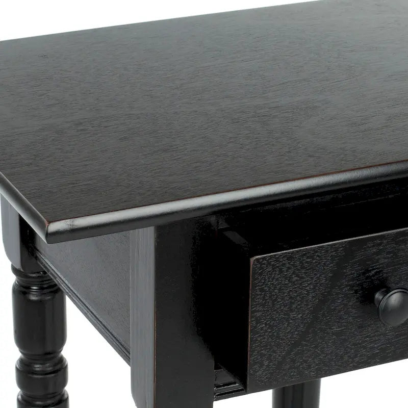 Highlighting the best of country chic decor, this End Table is the ideal small space solution. This piece's classic carved details shine through a pine wood construction in a distressed black finish, complementing any room's color scheme with ease and style.