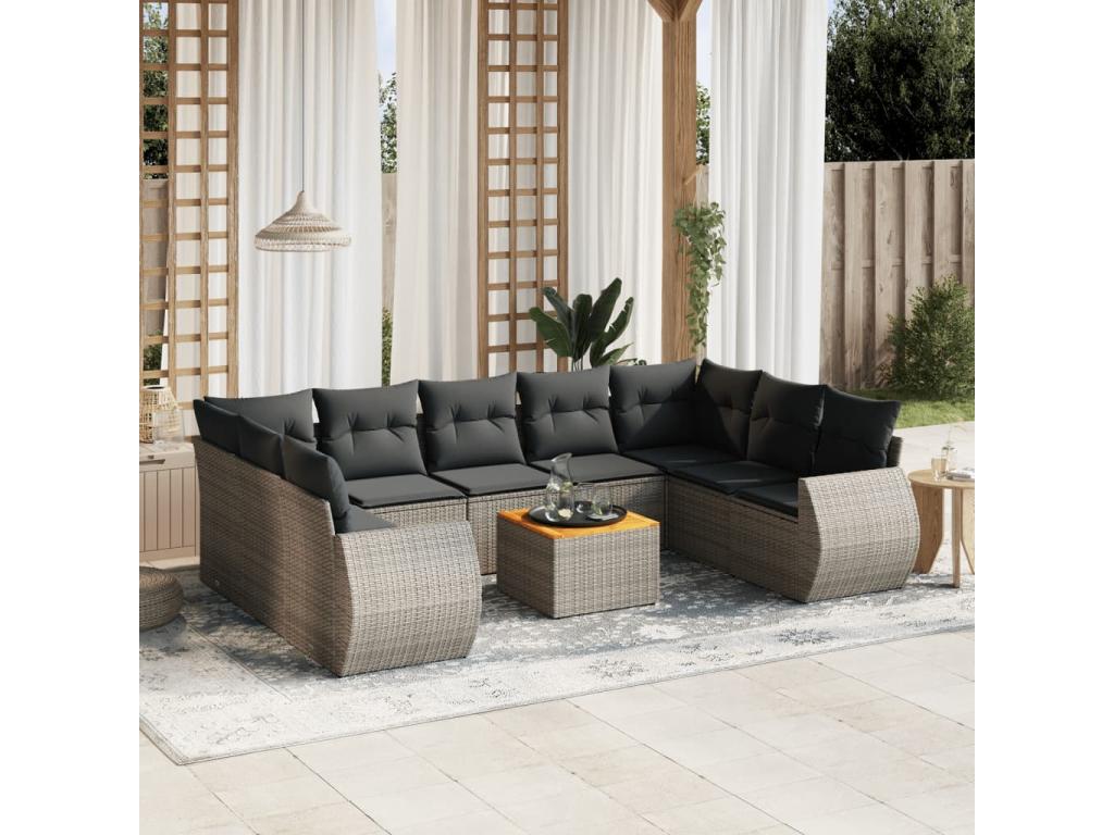 Garden furniture set with cushions, 10 pieces, grey woven resin, 92490VWNF