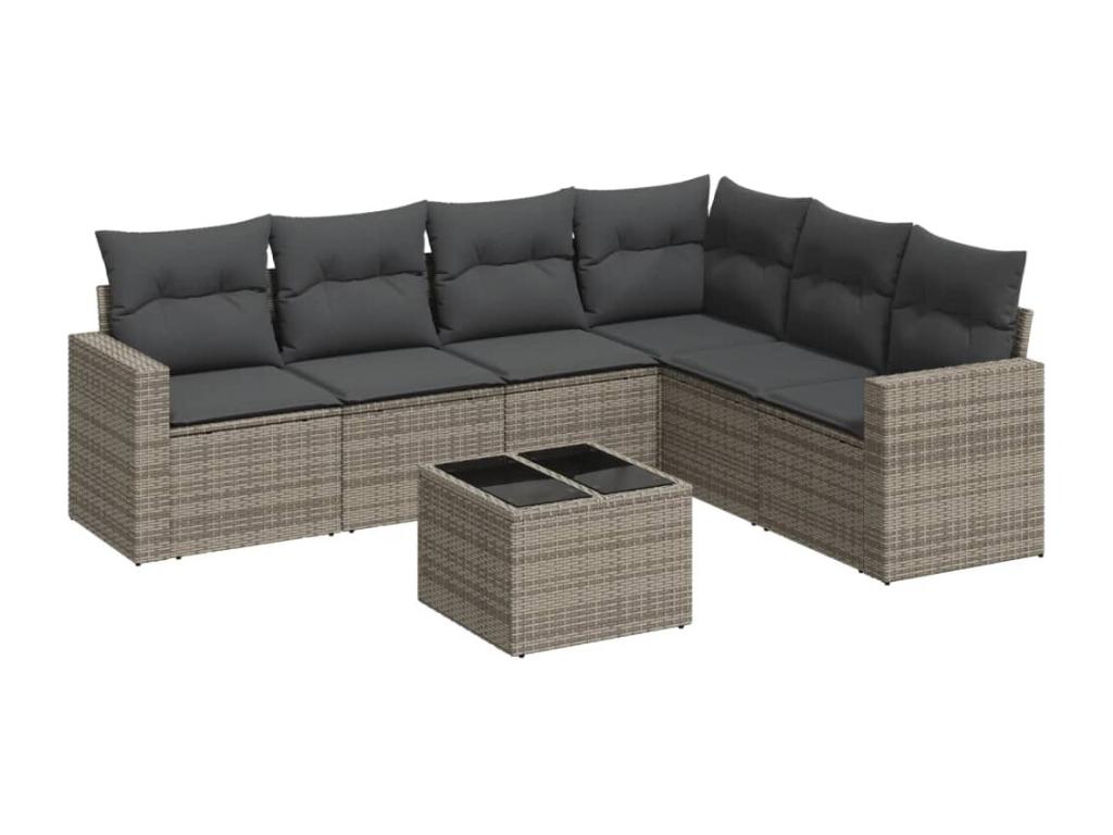 7-piece garden furniture set with cushions, grey woven resin, 66264PDBG