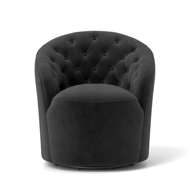 SEYNAR Modern Velvet Upholstered 360 Degree Swivel Barrel Chair with Button Tufted Back