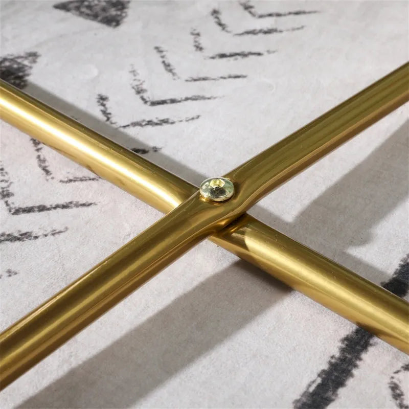 - Sturdy metal sled frame finished in gold tone, plastic floor protector underneath to make your floor scratch-free