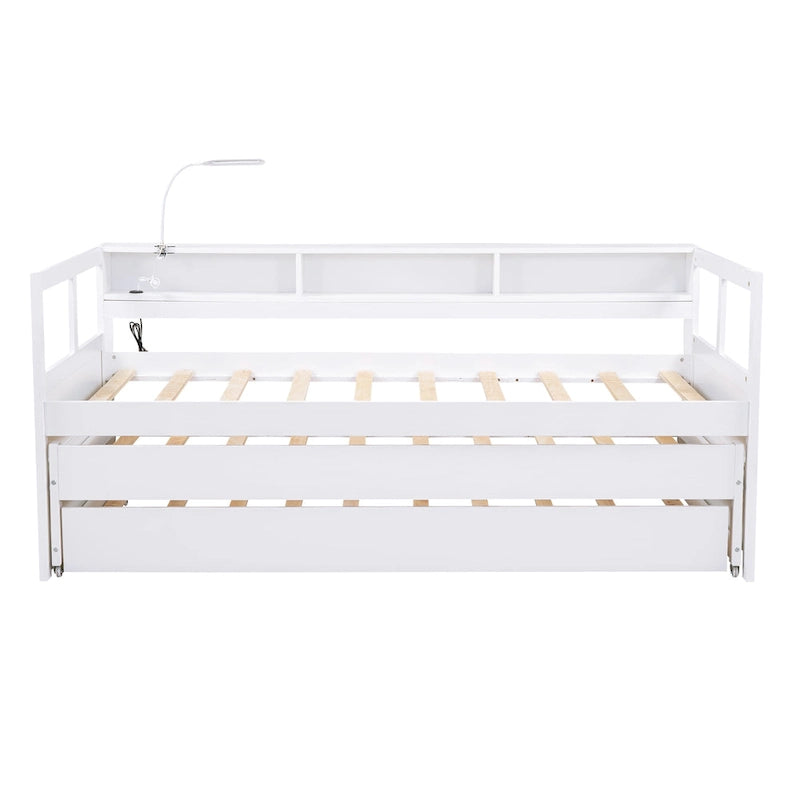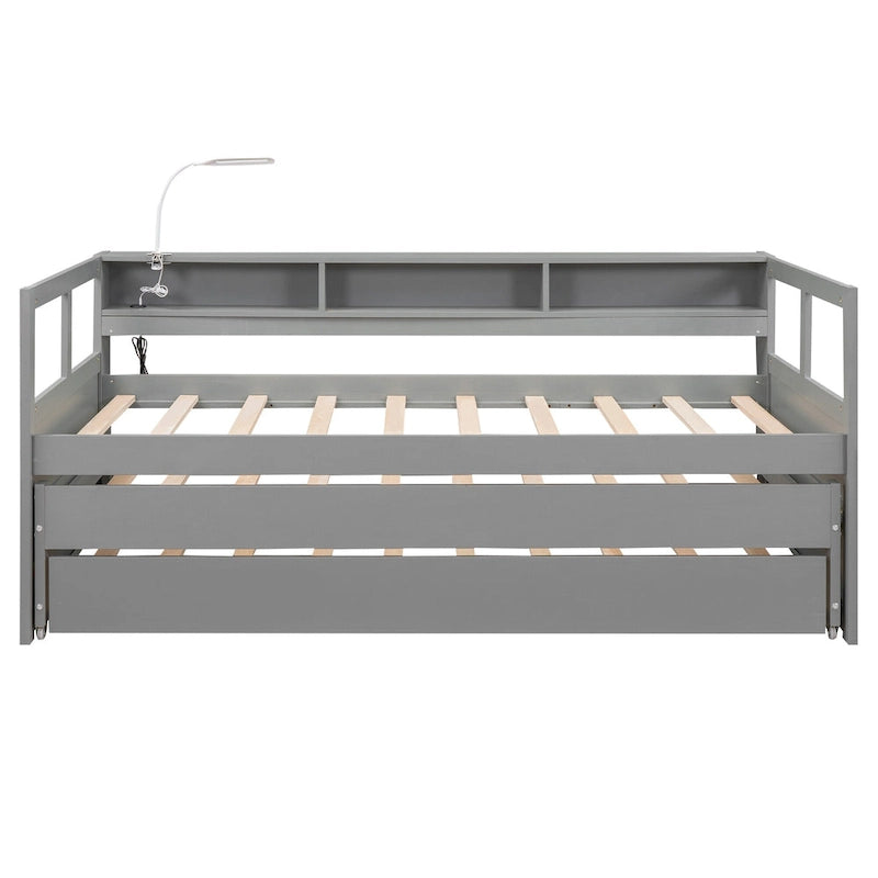 Twin XL Wood Daybed with 2 Trundles and USB Charging Design