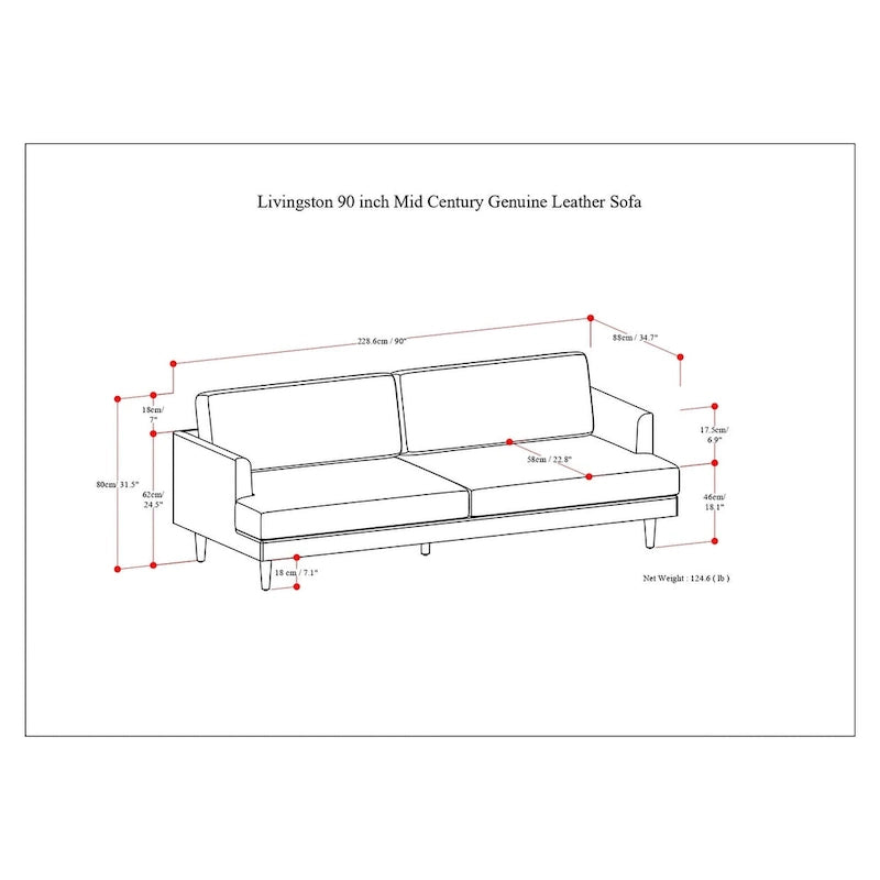 - Dimensions: Handcrafted sofa measures 90 W x 35.5 D x 32.75 H; supports up to 900 lbs. A spacious and sustainable option for large living rooms and open-concept spaces.
